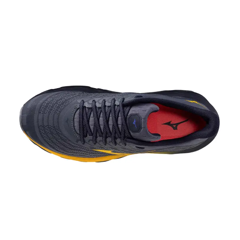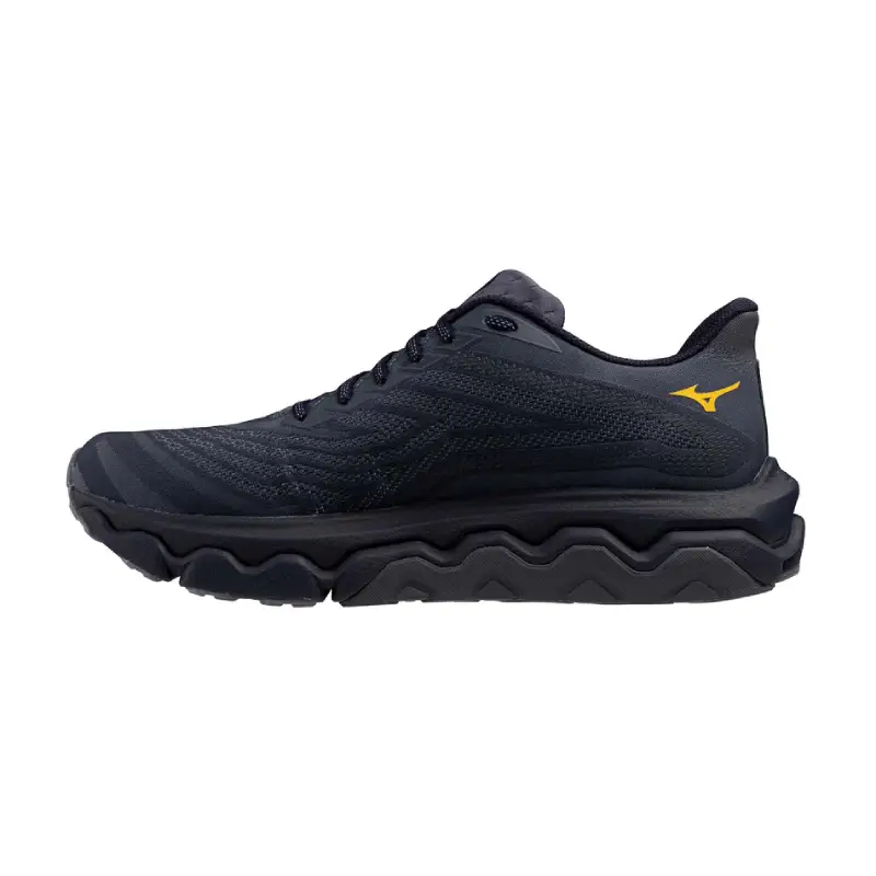 Асиметрична MIZUNO WAVE: Вълнообразна пластина с интегрирана гумена стена и широка подметка, която увеличава стабилността, без да компрометира омекотяването. Съответно една от малкото маратонки за бягане, които разполагат с външна вълна по цялото протежение на подметката.