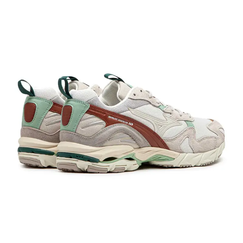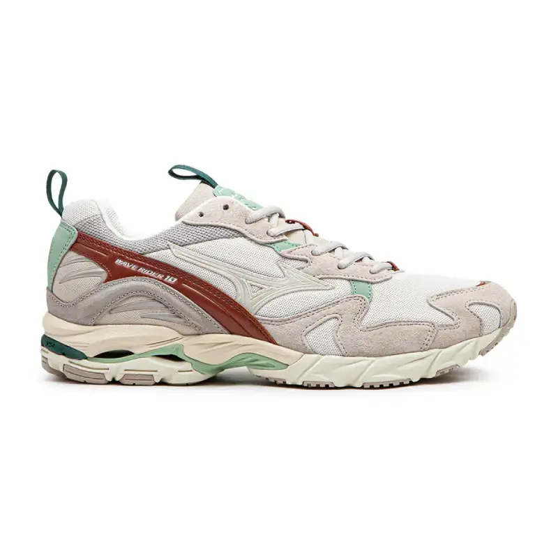Моделът включва Wave технологията на Mizuno, която осигурява по-добра стабилност и динамично абсорбиране на ударите. Много от характеристиките отразяват дизайна на Mizuno и показват внимание към детайлите и майсторството, като релефното и печатно лого на езика и високочестотно свързаните шипове на петата. Wave Rider 10 е изтънчена комбинация от висококачествен велур и мрежа. Технологичността е интегрирана по фин начин чрез меки контрасти и тонални цветове, докато премиум текстурите и богатите материали правят този стил перфектен за изискан ежедневен вид. Да не забравяме че това са маратонки за бягане.